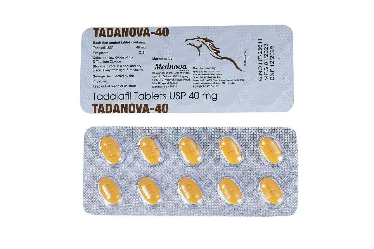 - Tadanova 40mg es un tratamiento altamente efectivo para la disfunción eréctil (DE) en hombres. Funciona aumentando el flujo sanguíneo hacia el pene, ayudando a producir y mantener una erección durante la estimulación sexual.